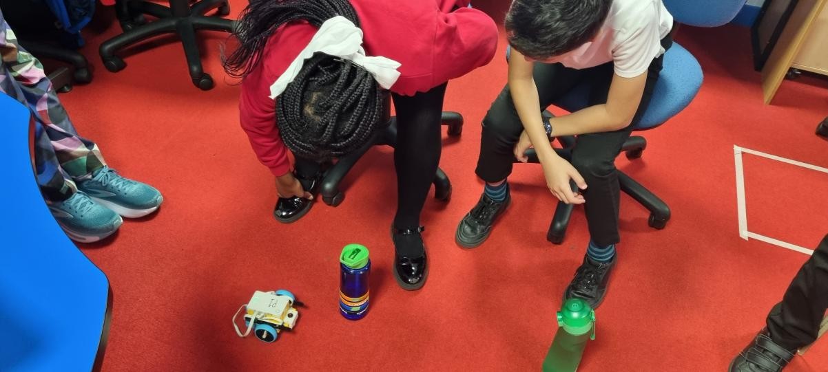 Robot Dancing! We've been trying to get our robots to weave in and out of the bottles. Frustrating but we all managed in the end!